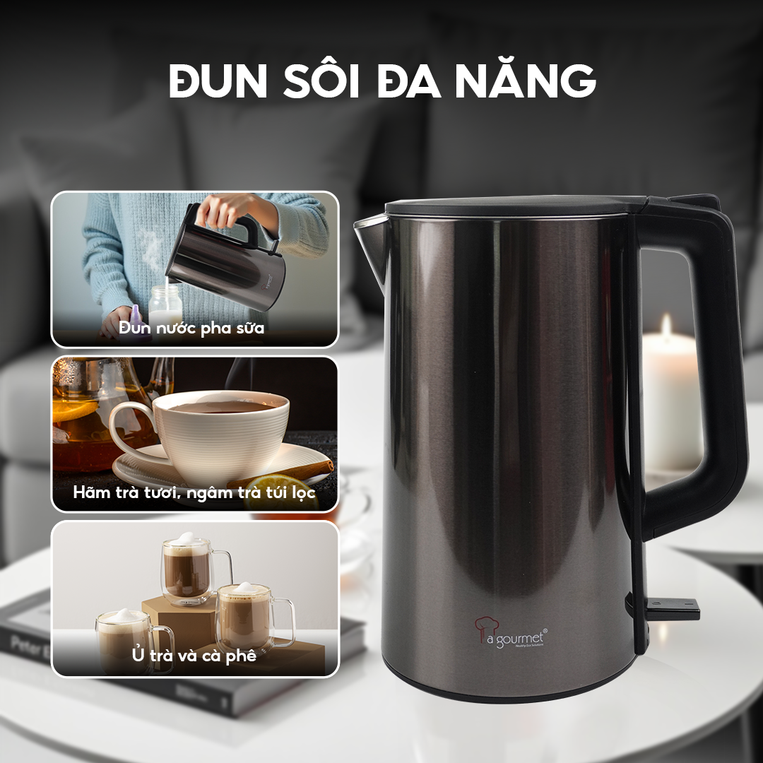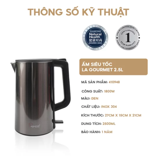 Ấm siêu tốc chống bỏng La gourmet Titannium 2,5L Đen – 410948 – La gourmet Vietnam
