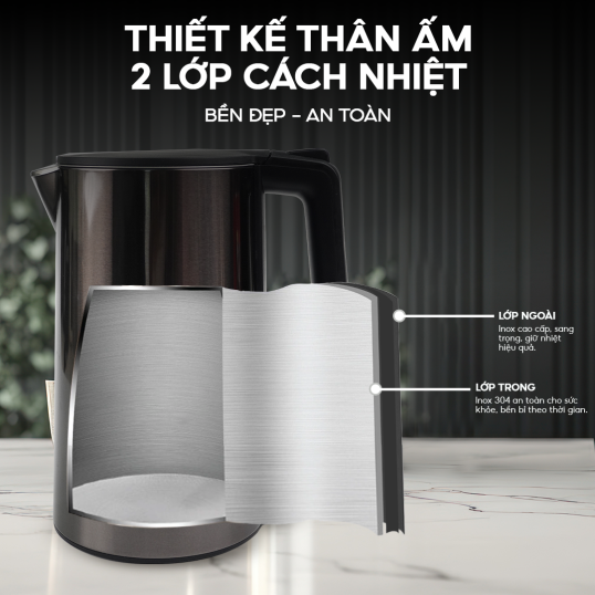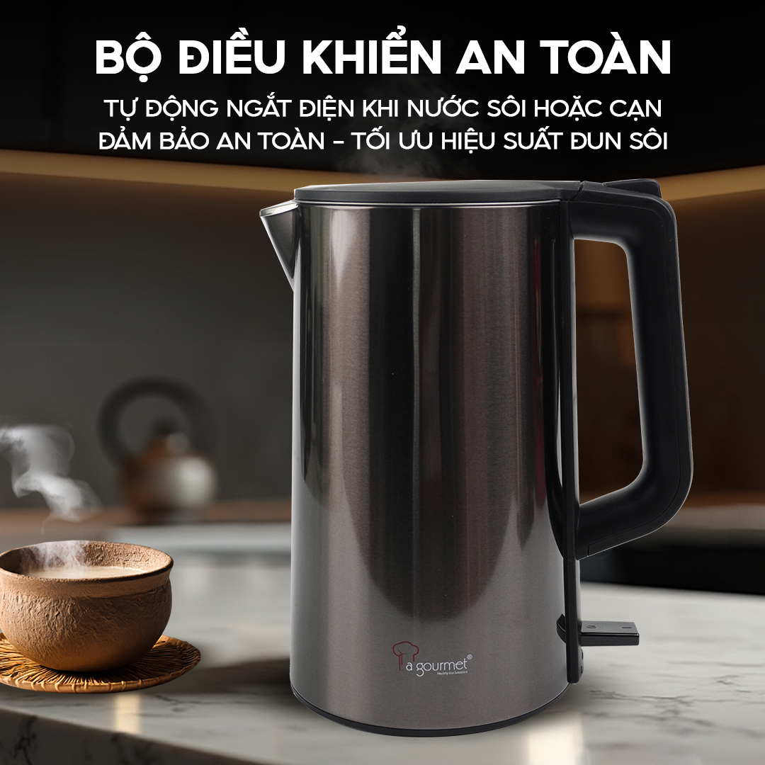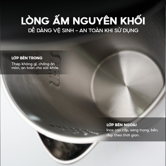 Tính năng an toàn: Bảo vệ chống sôi khô (Tự động tắt khi nước sôi)