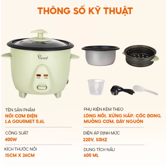 Nồi cơm điện La gourmet 0,6L Xanh mint – 413123
